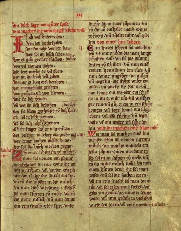Beginn des Buches von guter Speise auf fol. 156r im Hausbuch des Michael de Leone